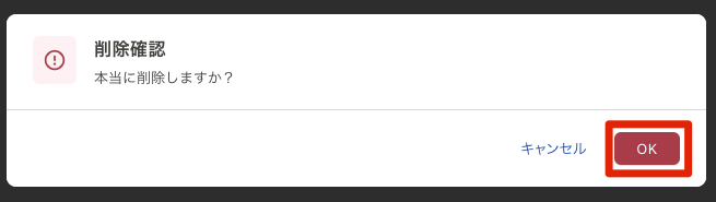 削除処理を進める場合は [ OK ]ボタンをクリック