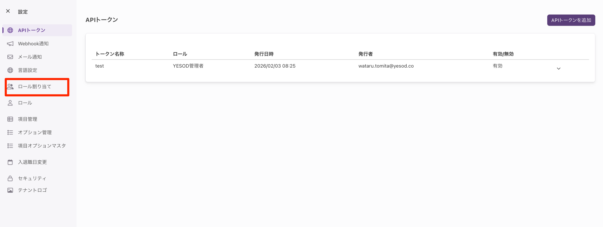 設定メニューより、[ロール割り当て]をクリック