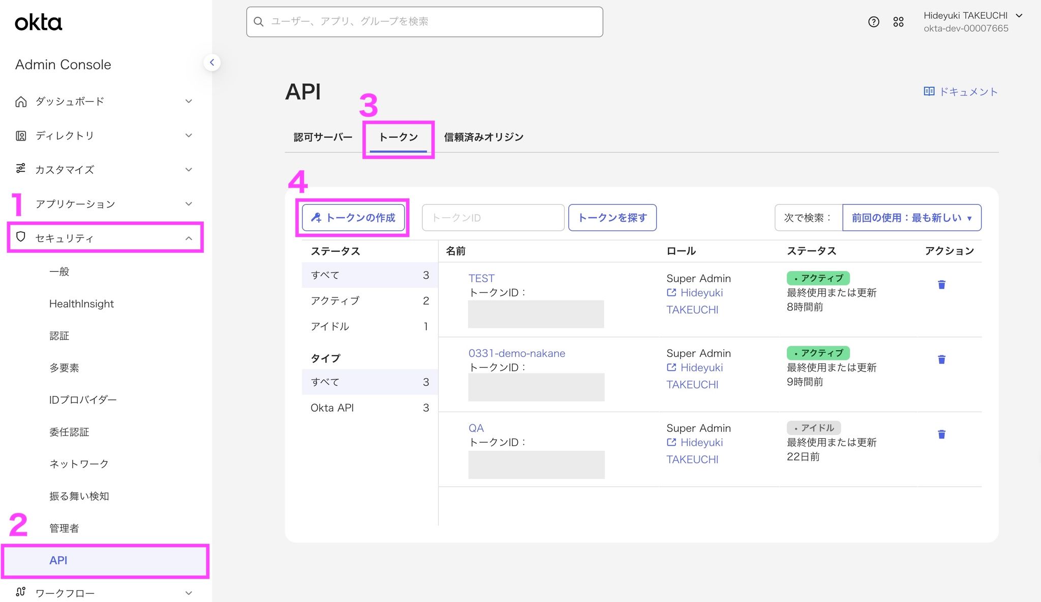 APIドキュメント | https://developer.okta.com/docs/reference/ |