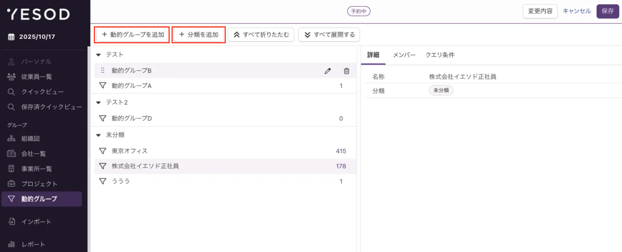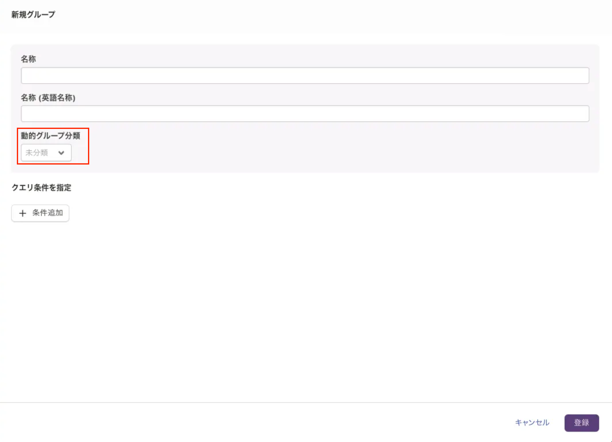 - 変更モードで左上の「動的グループを追加」ボタンから追加(スクリーンショット赤枠)