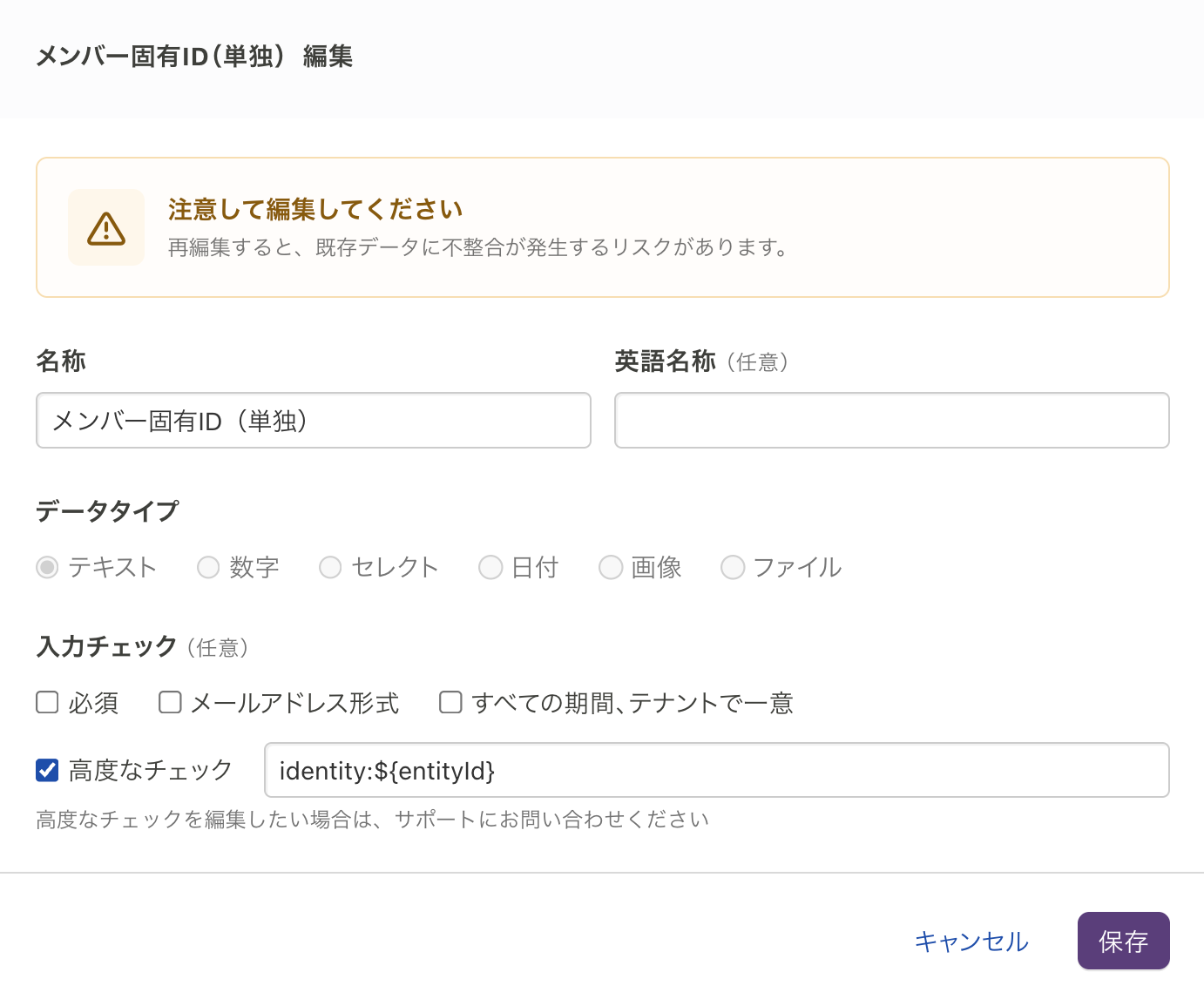 また、EntityId(内部ID)は内部で必ず一意になるように割り振られるので、一意のID項目としての利用も可能です。