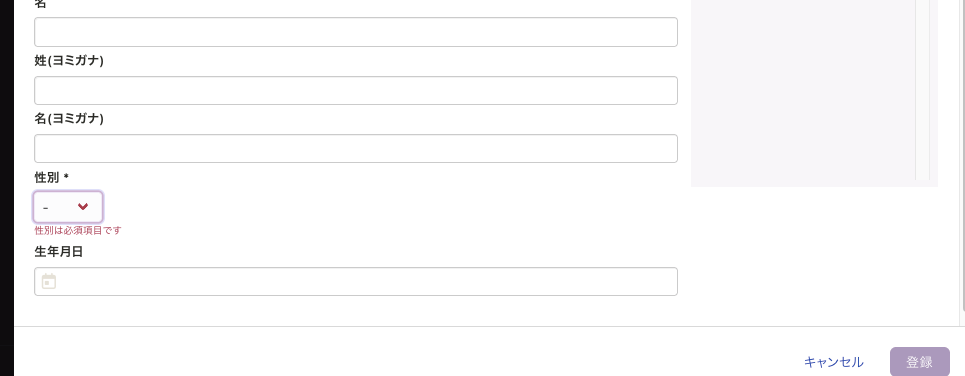 セレクト型の項目を「必須」にした際に、メンバー詳細画面やメンバー追加画面などで必須にした項目の選択肢をプルダウンで選択していなかった場合には、バリデーションがかかって入力が完了できないようになりました。