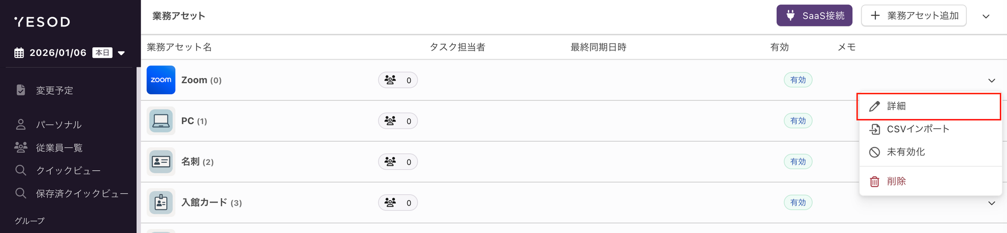 業務アセット名をクリックすると詳細画面が開くようになりました