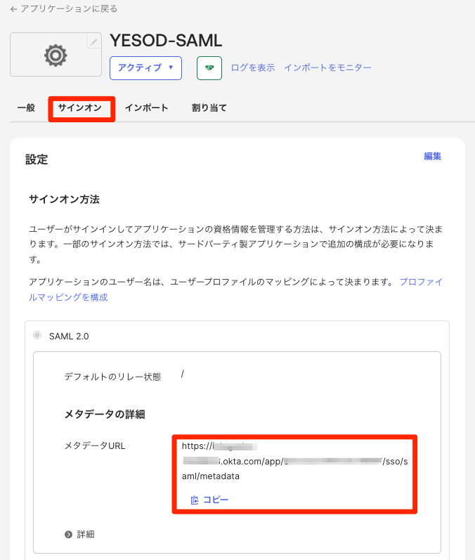 - YESODにログインをしてダウンロードしたメタデータを 「設定 - セキュリティ」から、アップロードをしてください