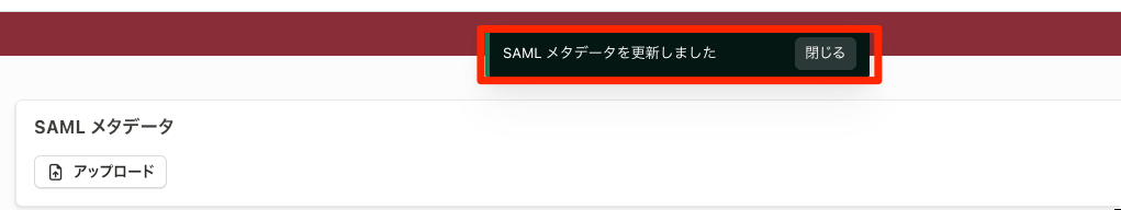 - SAMLメタデータのアップロードが完了すると、「SAML メタデータを更新しました」と表示が出ます。YESODでログインできるかを確認してください