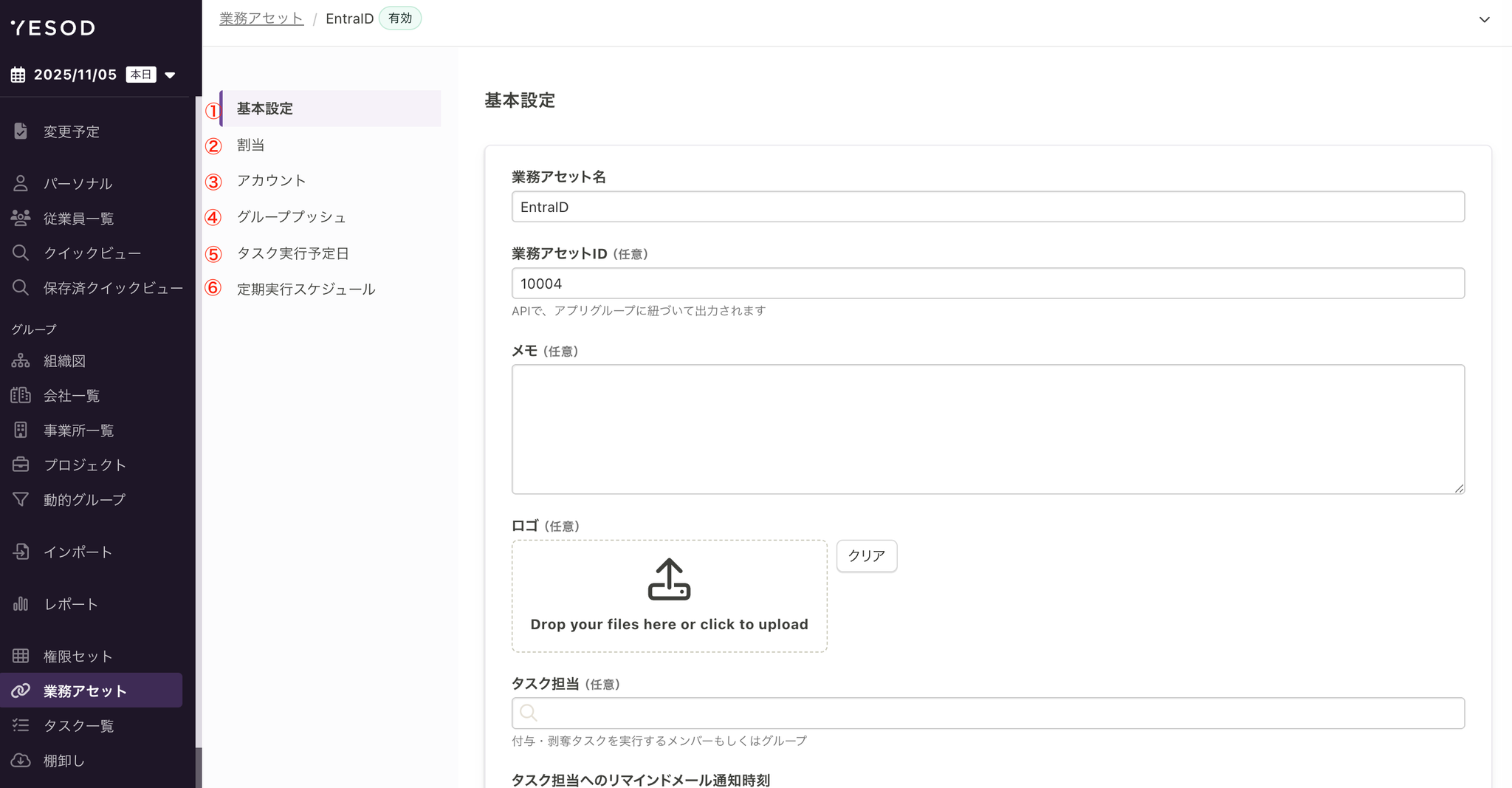 業務アセット一覧のリスト右にあるキャレットから、業務アセットを有効化することで、